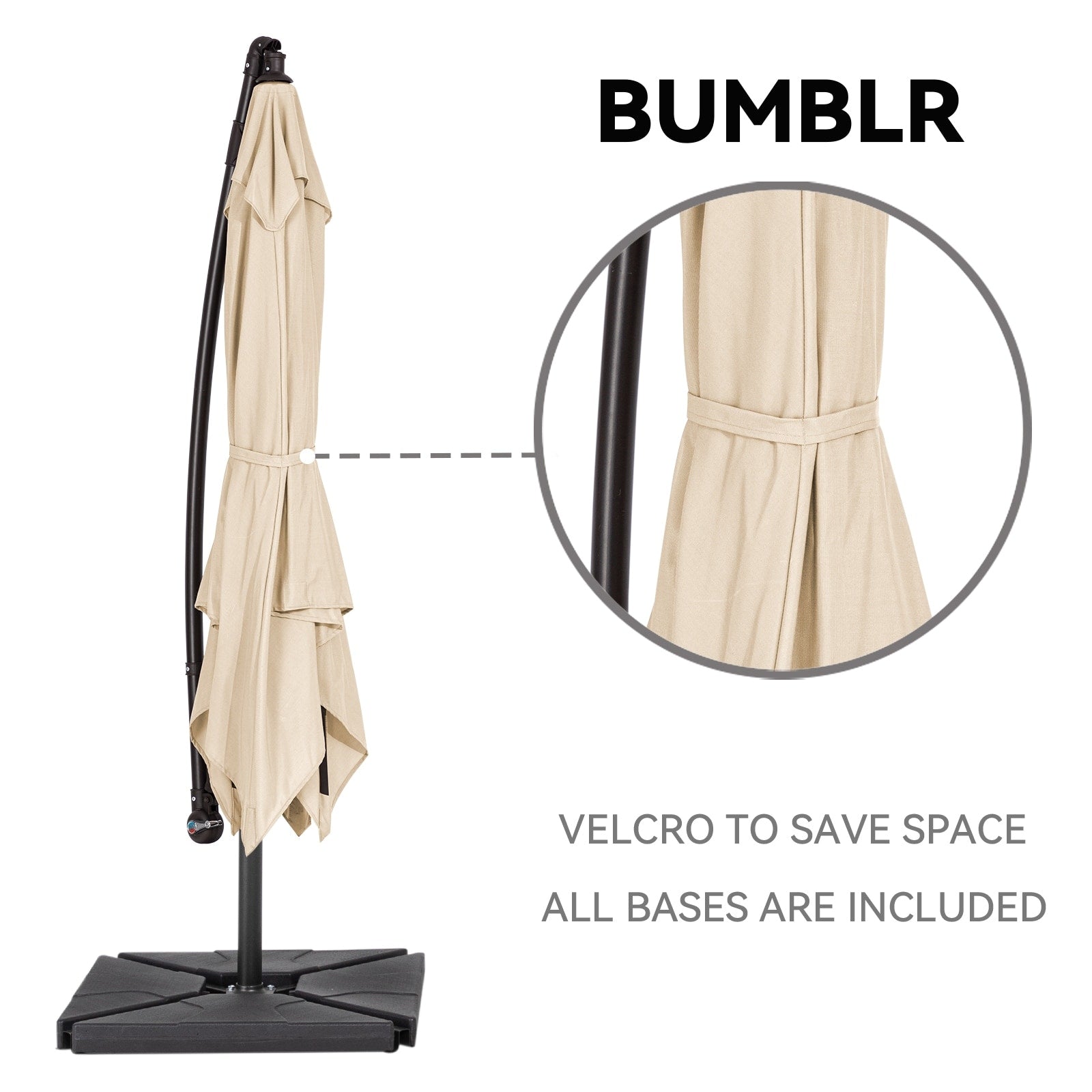 Parasol déporté à manivelle en acier de 10 pieds avec base lestée Parasol déporté à manivelle en acier de 10 pieds avec base lestée
