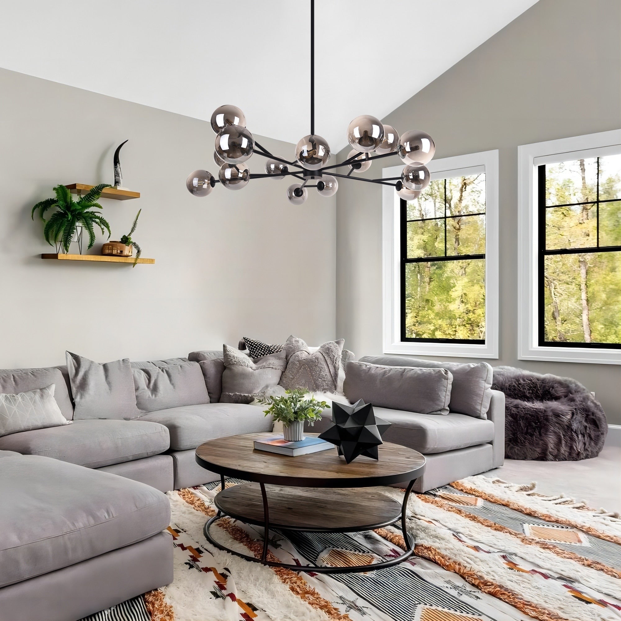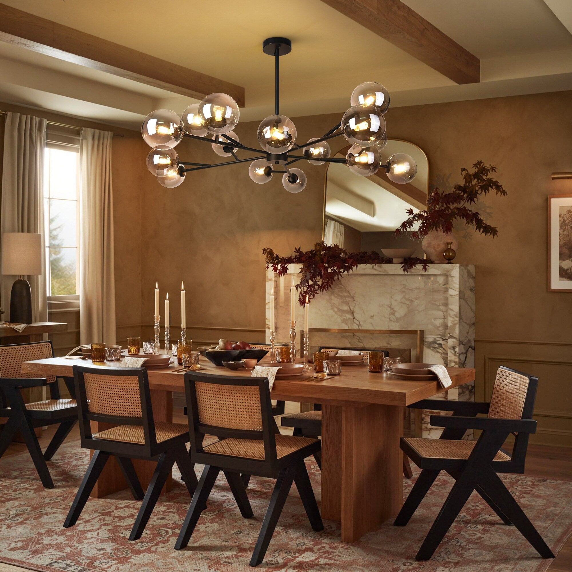 €39,00Lustre linéaire moderne à 15 lumières pour îlot de cuisine Sputnik avec branches et globes en verre