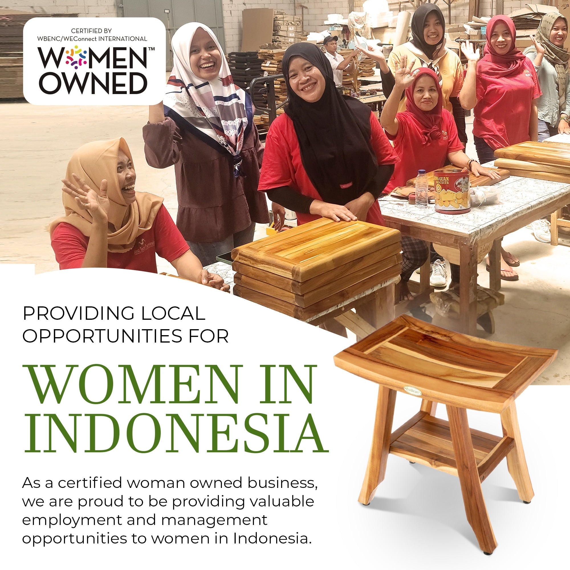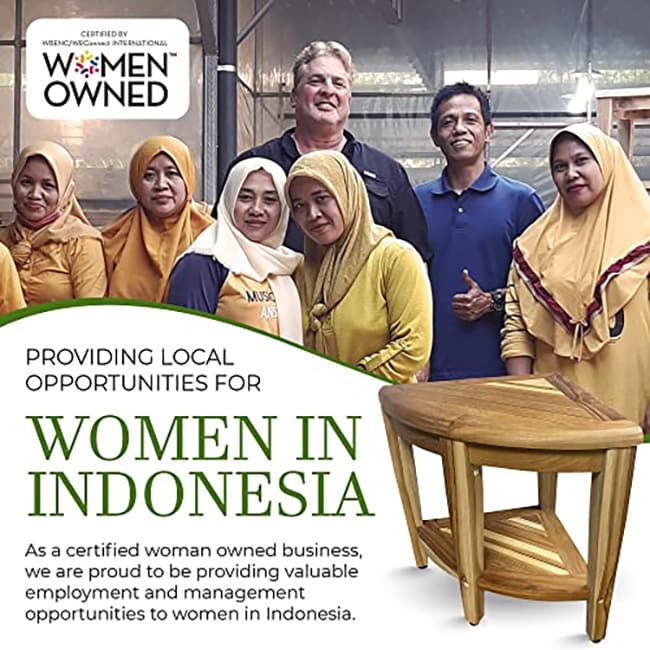 EcoDecors, Serenity, Banc de douche en teck, Tabouret de douche en teck, Banc de douche d'angle en teck, 45 cm, avec étagère EcoDecors, Serenity, Banc de douche en teck, Tabouret de douche en teck, Banc de douche d'angle en teck, 45 cm, avec étagère