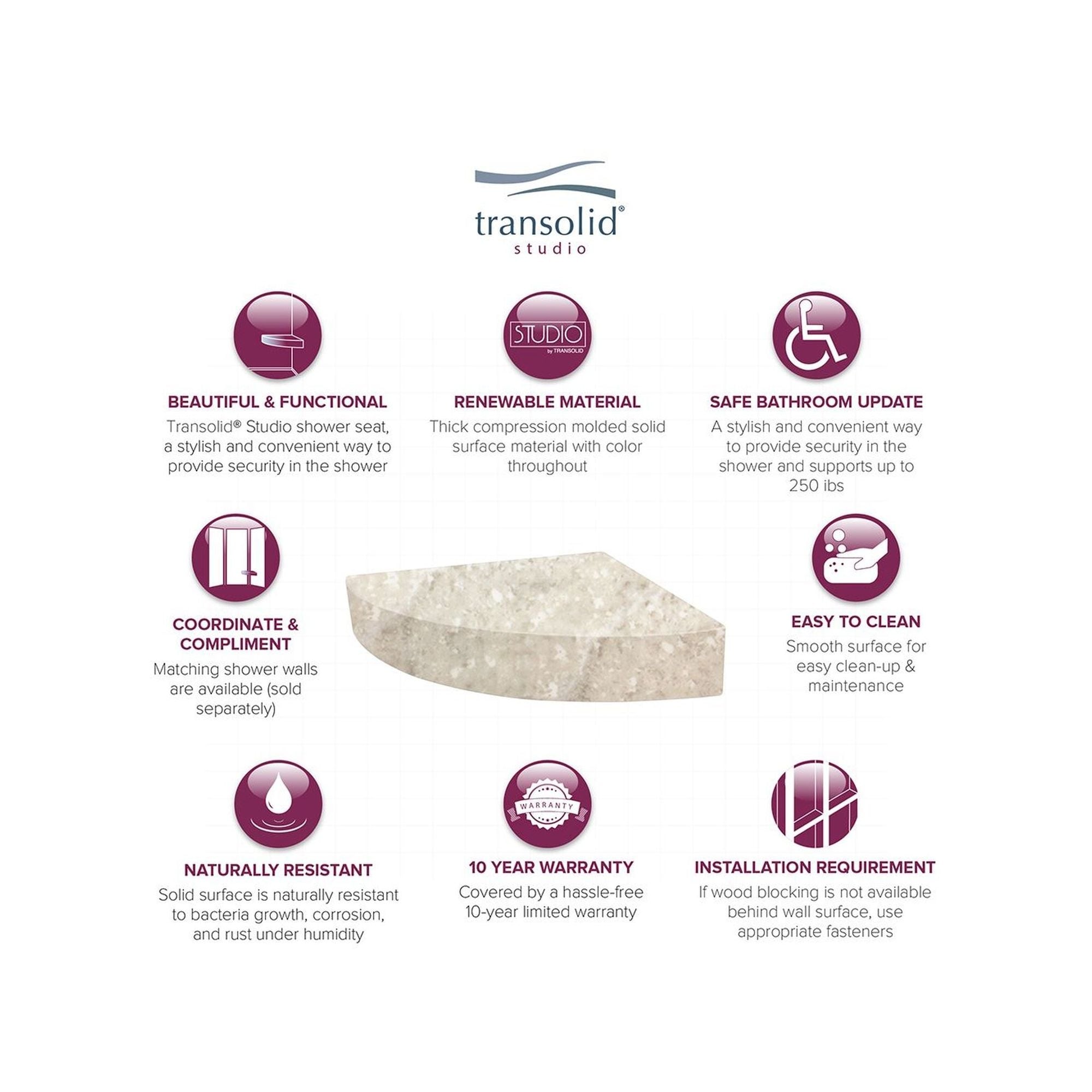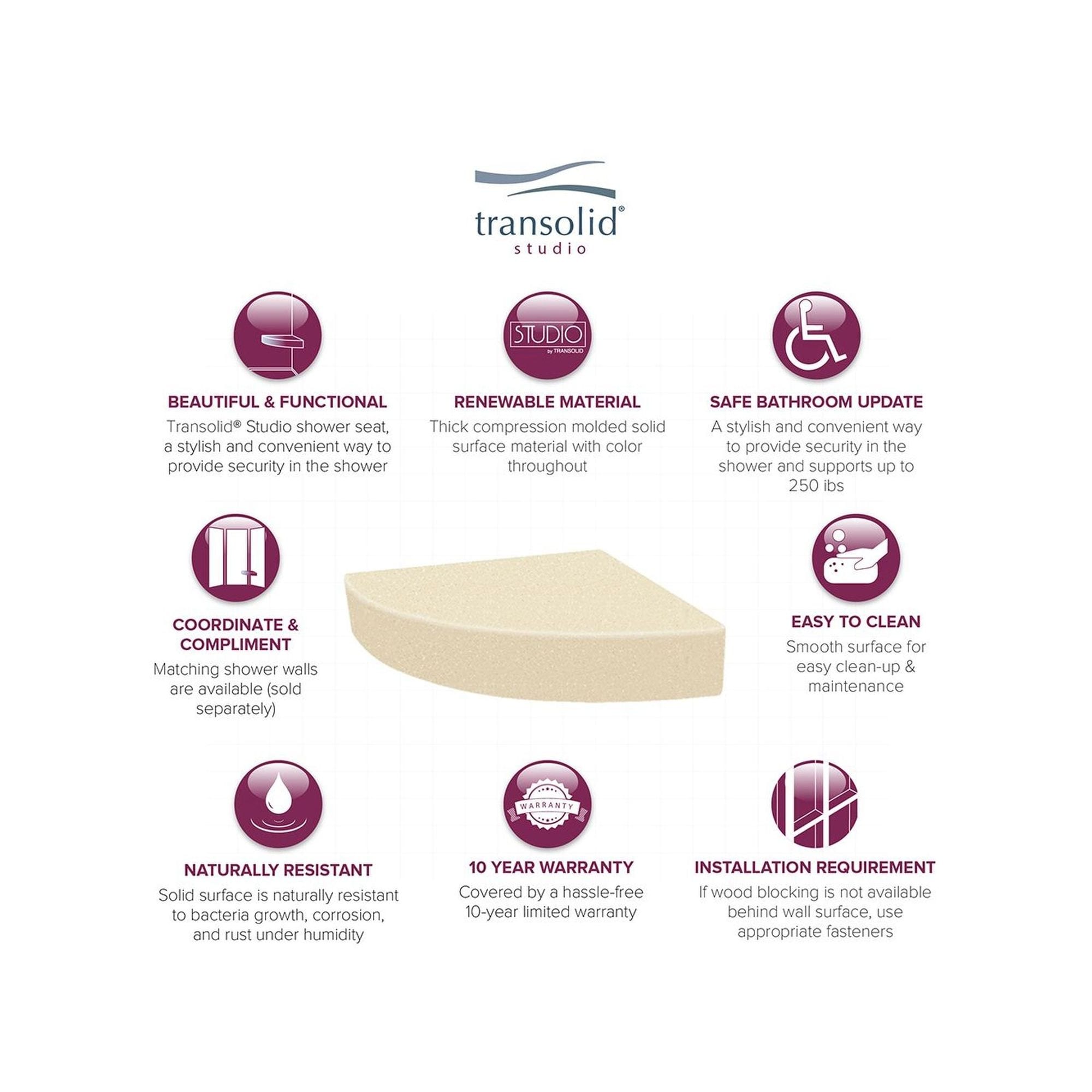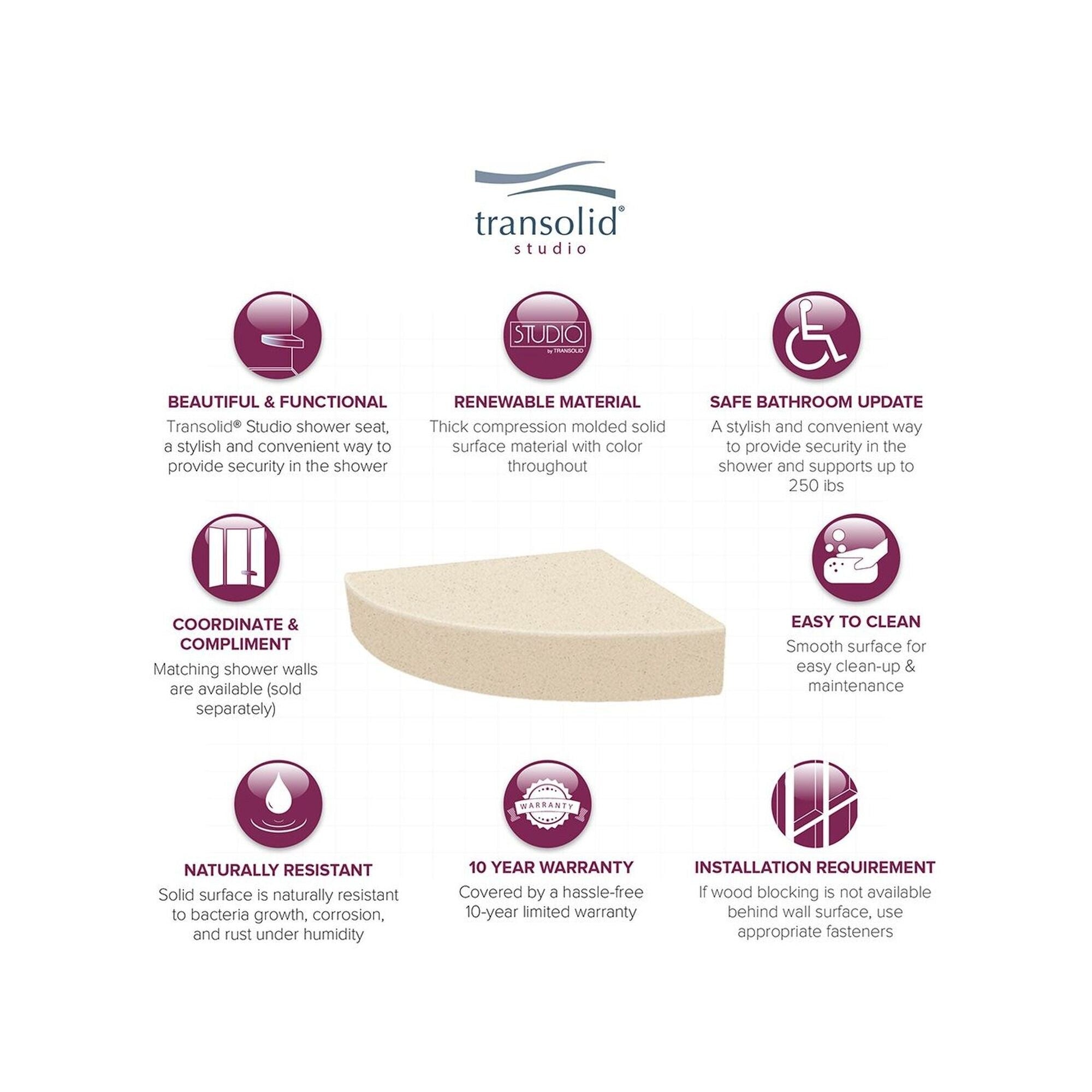 Siège de douche d'angle mural en surface solide Transolid Studio 14 po x 14 po - 14,5 x 14,25 x 3 Siège de douche d'angle mural en surface solide Transolid Studio 14 po x 14 po - 14,5 x 14,25 x 3