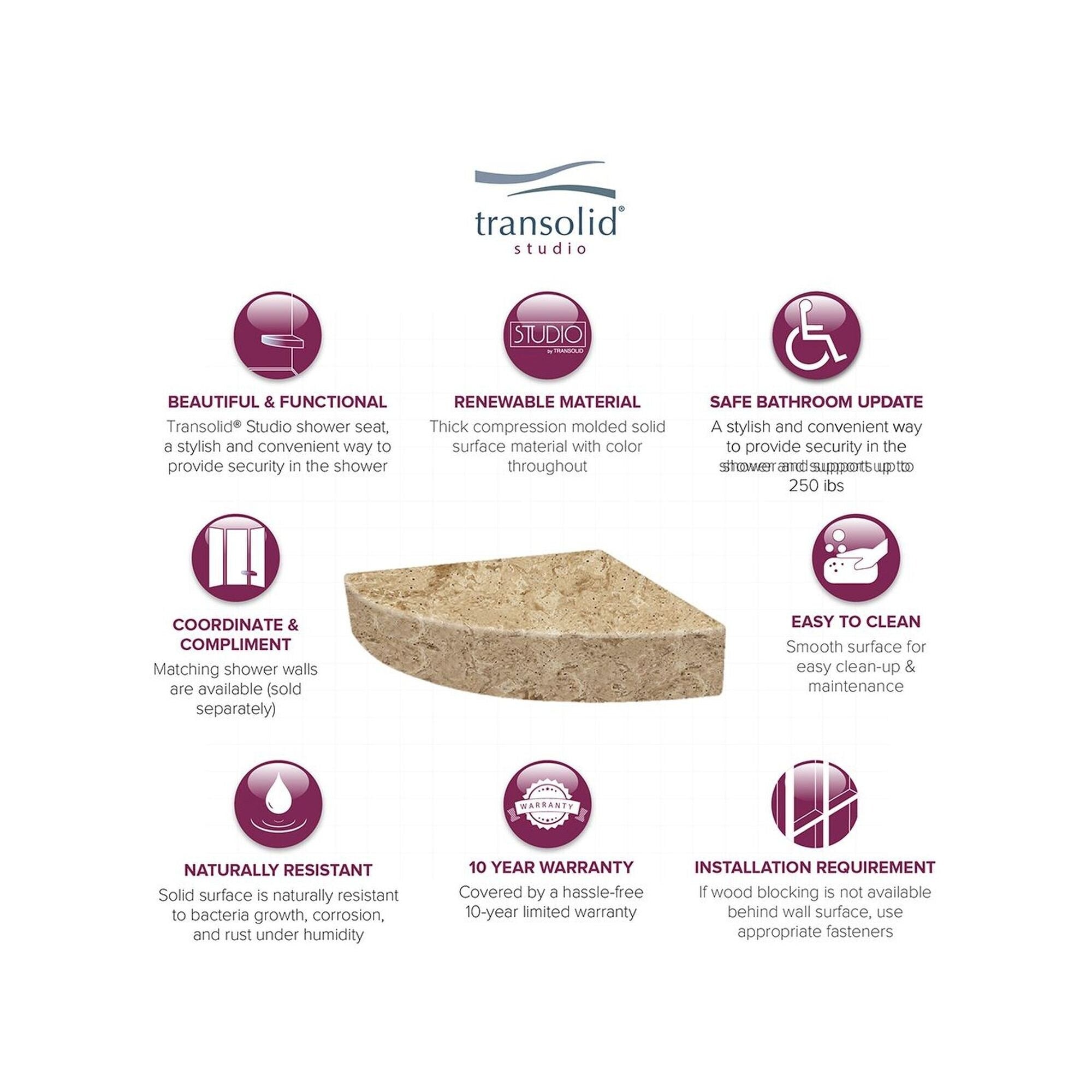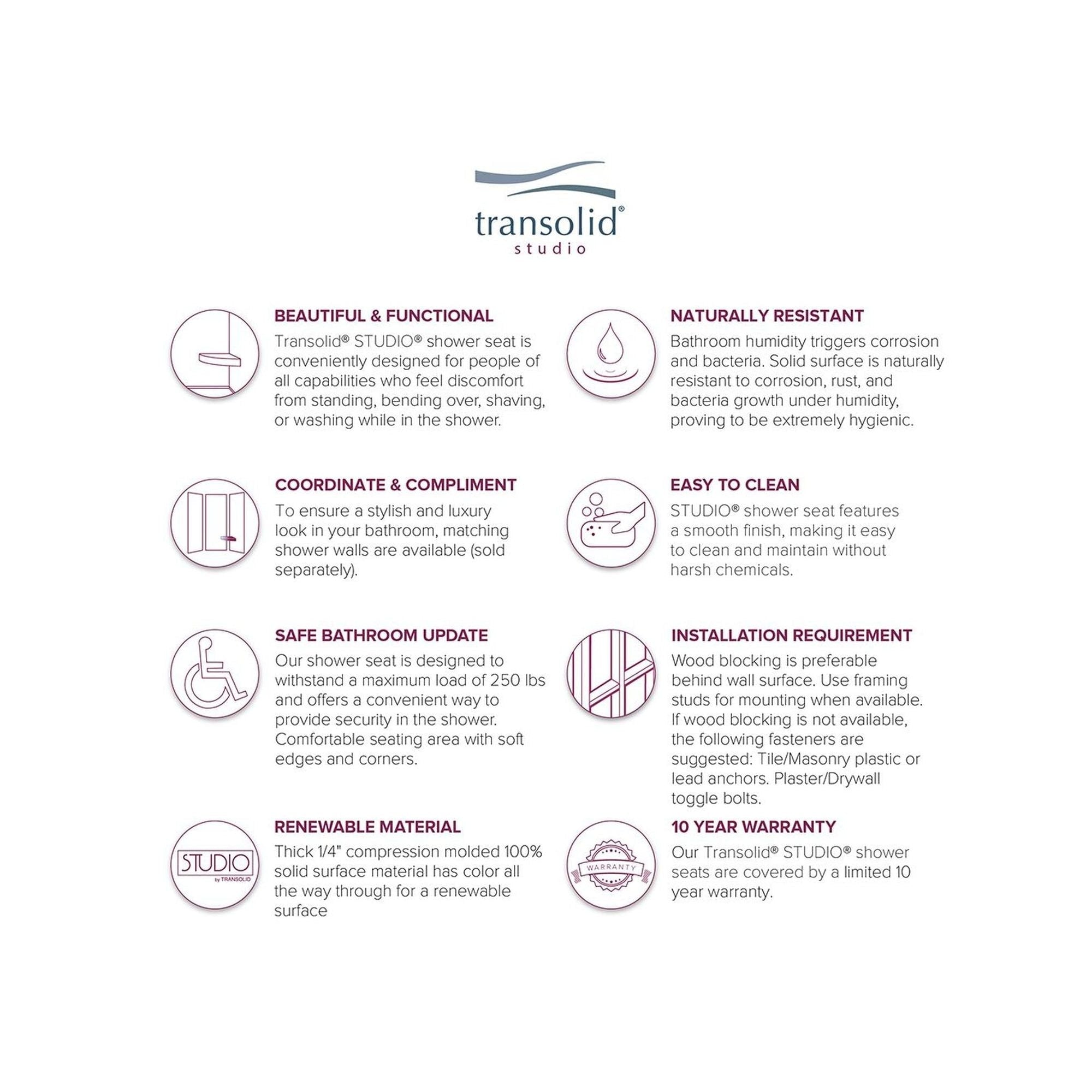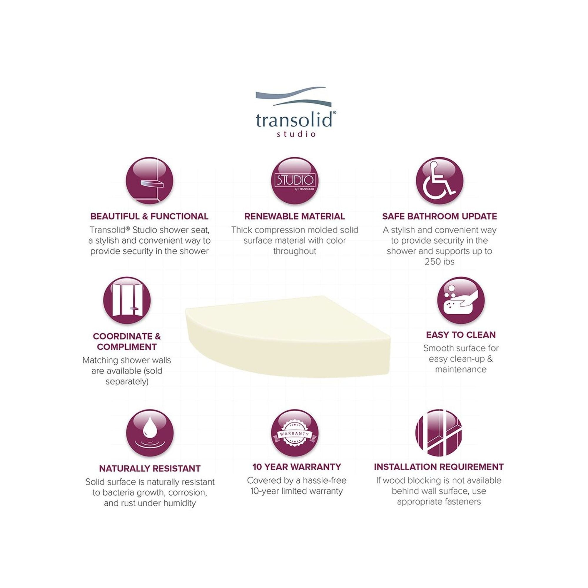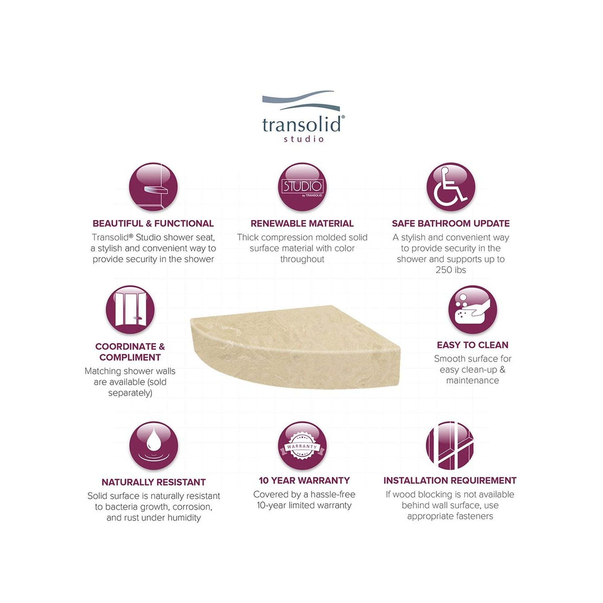 Siège de douche d'angle mural en surface solide Transolid Studio 14 po x 14 po - 14,5 x 14,25 x 3 Siège de douche d'angle mural en surface solide Transolid Studio 14 po x 14 po - 14,5 x 14,25 x 3