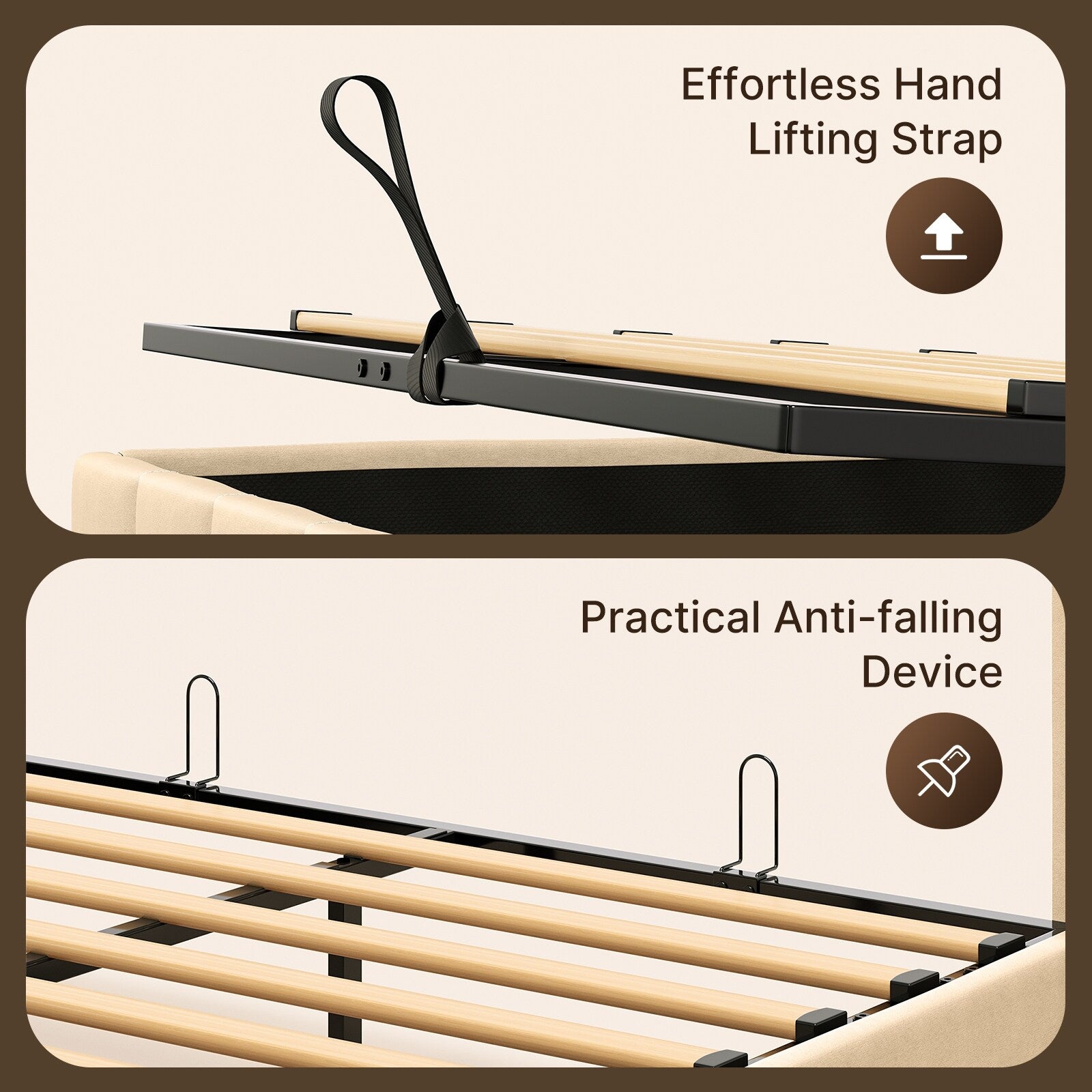 €39,00Cadre de lit relevable avec rangement, cadre de lit plateforme rembourré avec système de rangement hydraulique et tête de lit