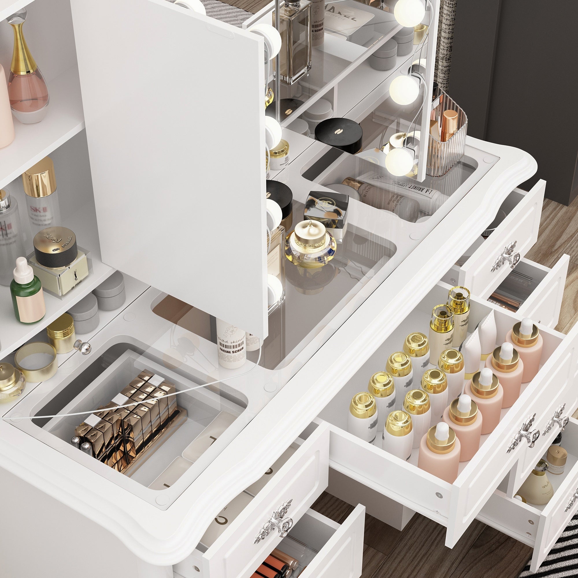 Ensemble coiffeuse avec miroir tactile et tabouret Ensemble coiffeuse avec miroir tactile et tabouret