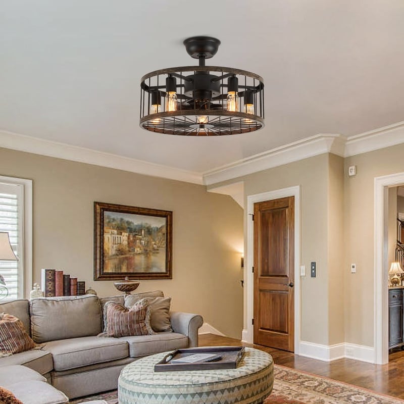 €39,00Ventilateur de plafond cage noir à 5 pales Farmhouse Driftwood avec télécommande