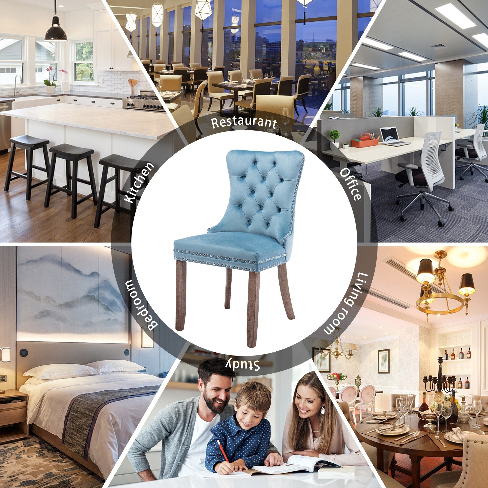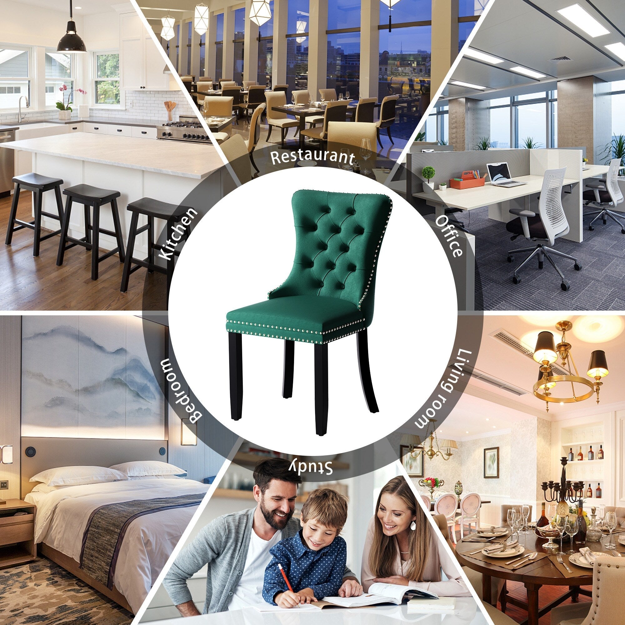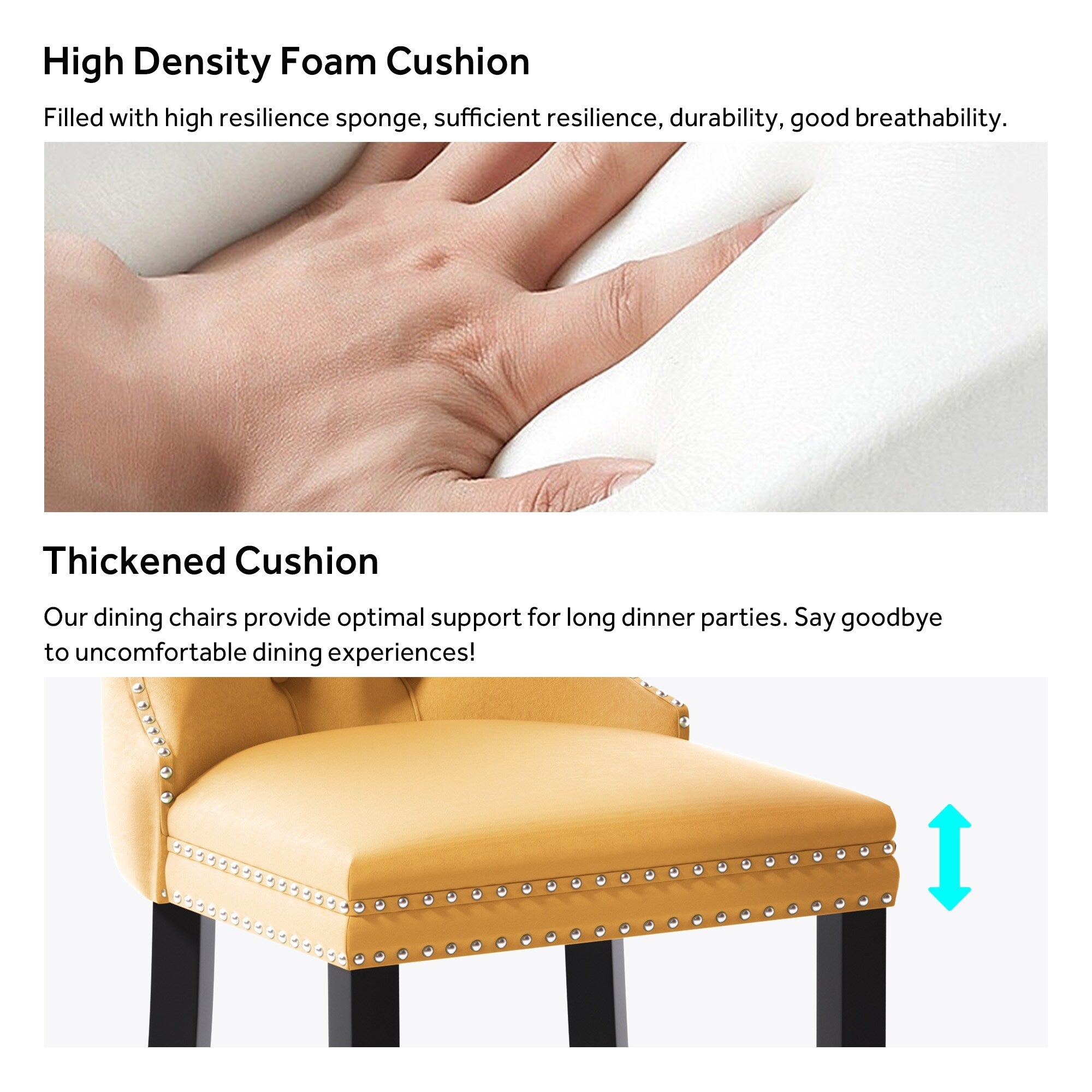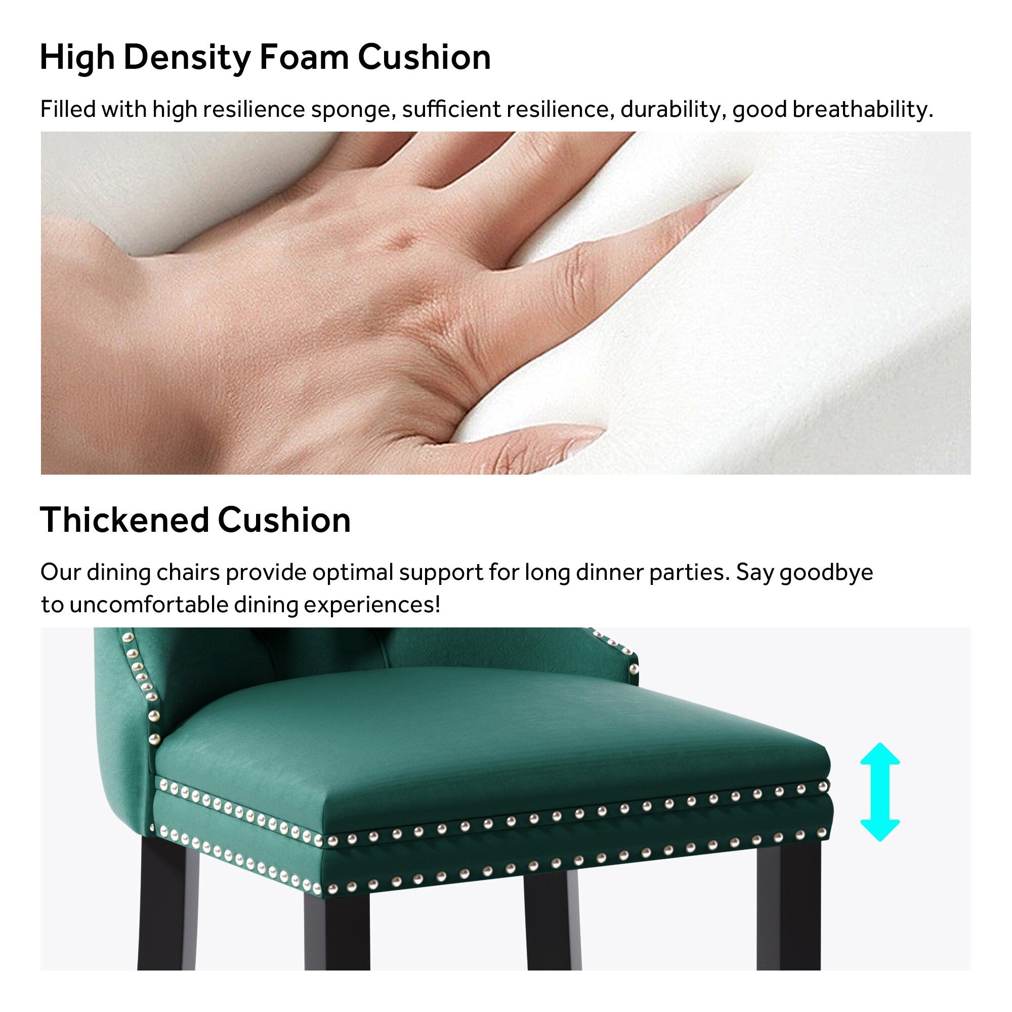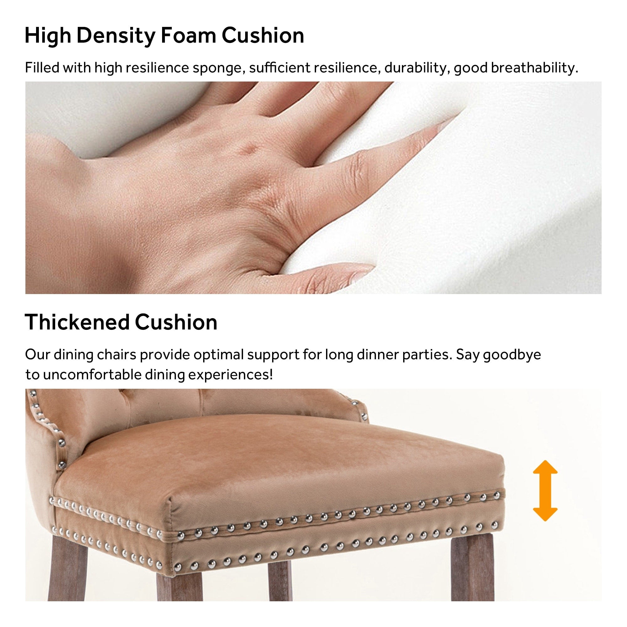 Chaise de salle à manger capitonnée en velours avec pieds en bois massif, lot de 6 Chaise de salle à manger capitonnée en velours avec pieds en bois massif, lot de 6
