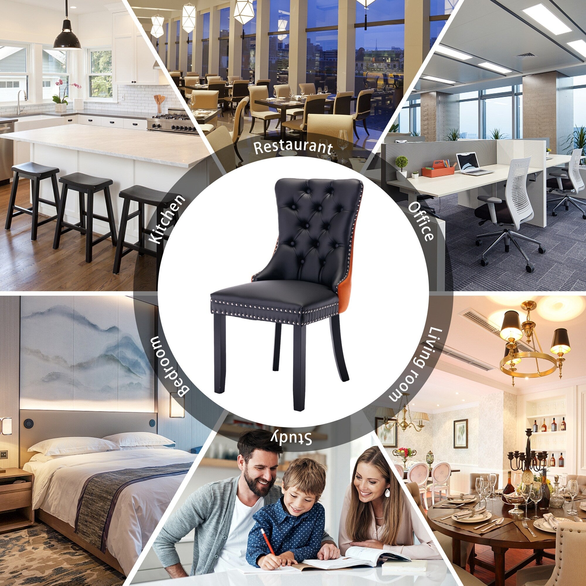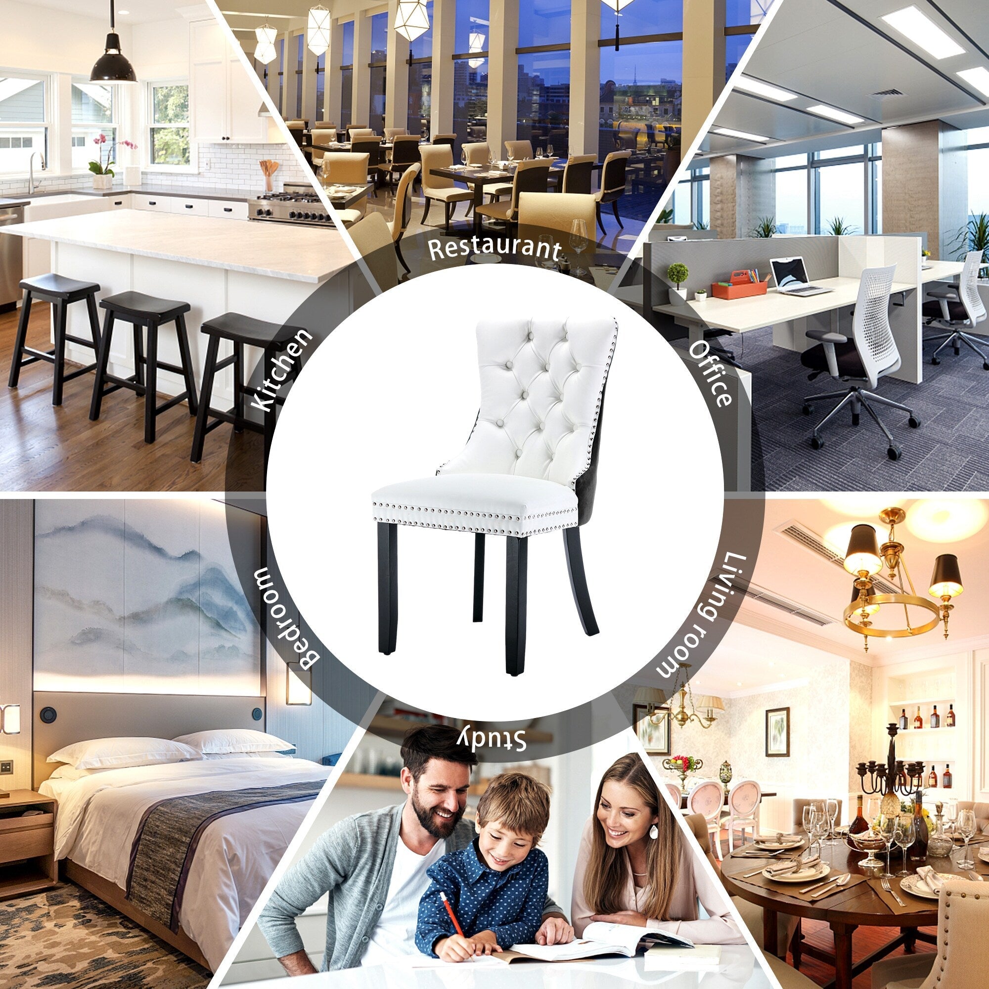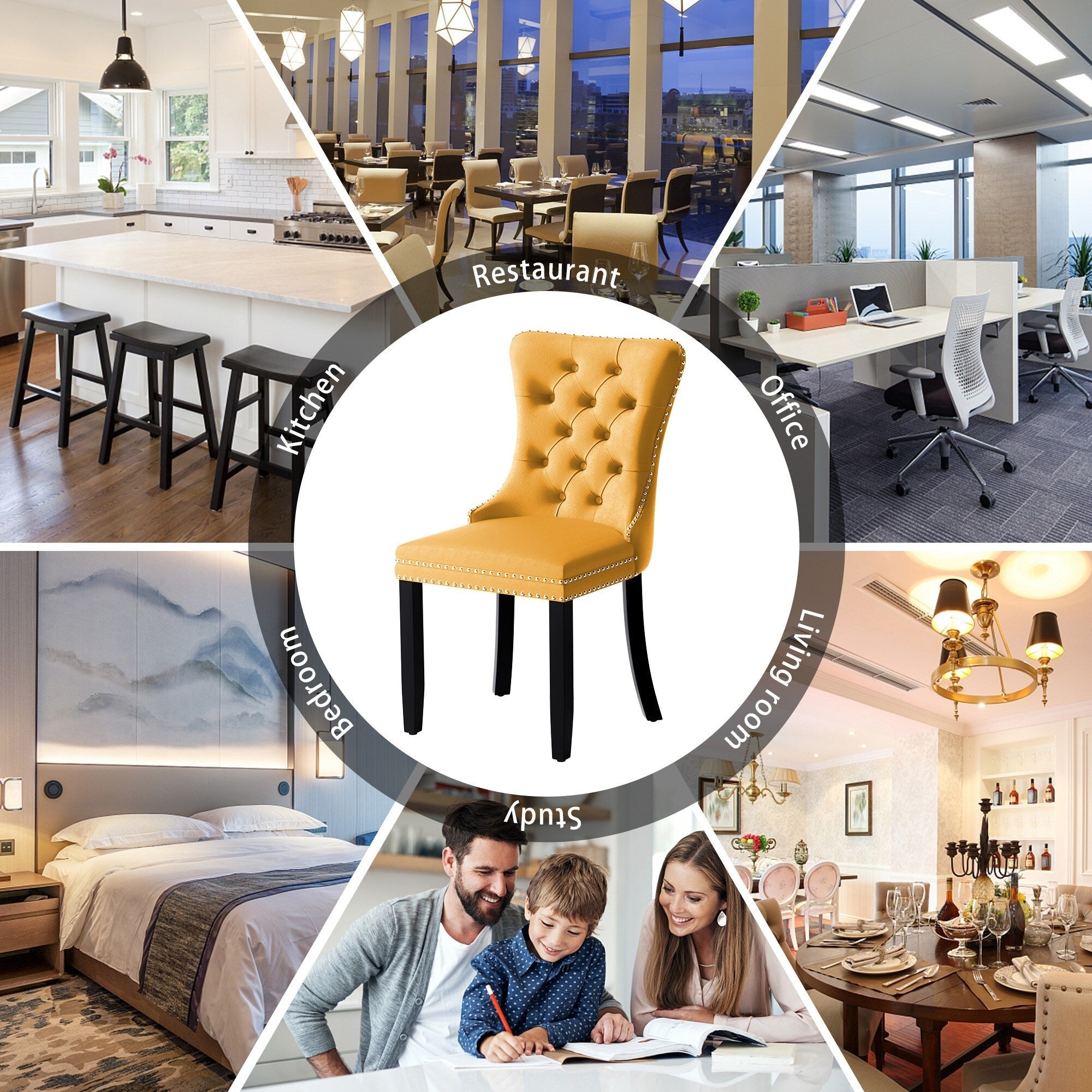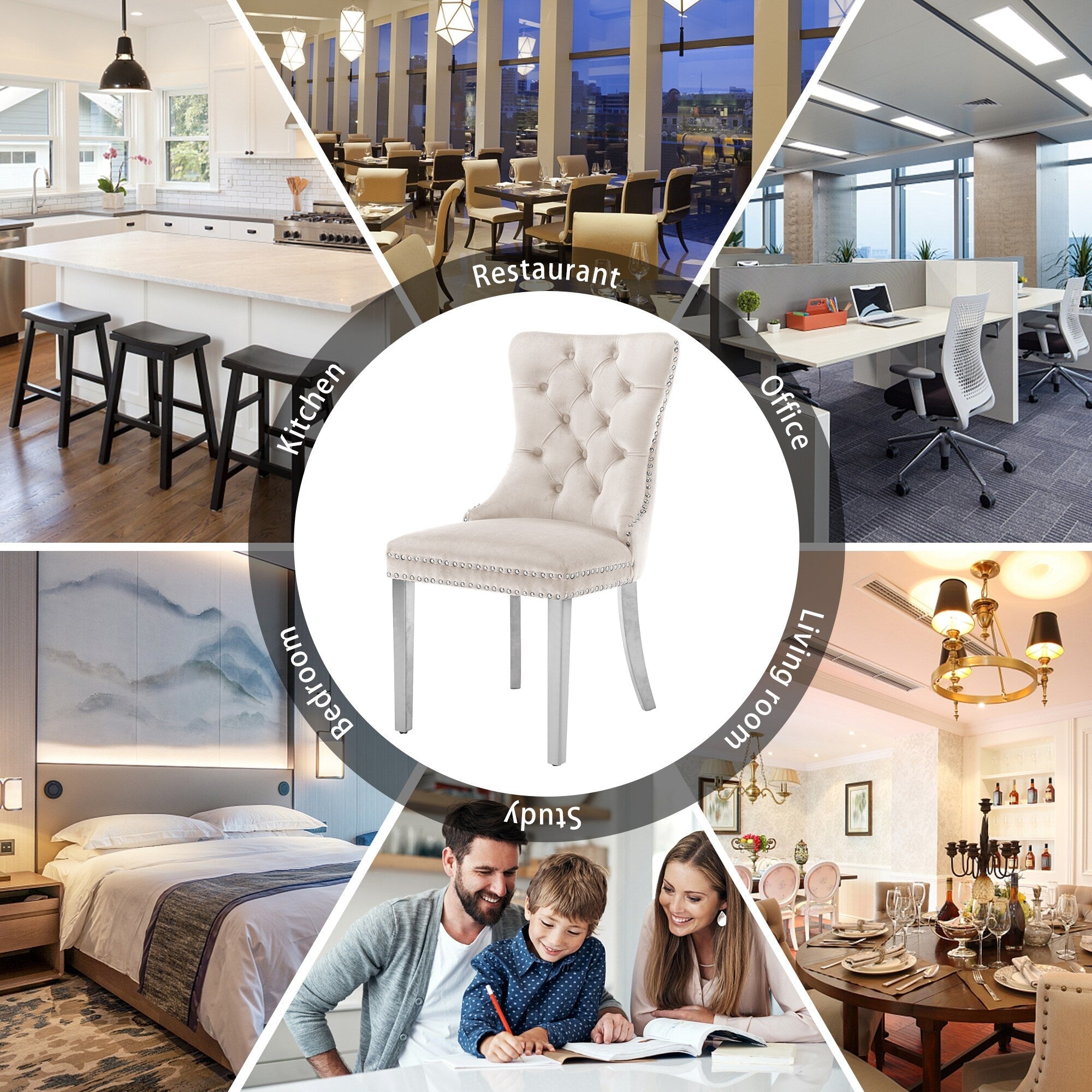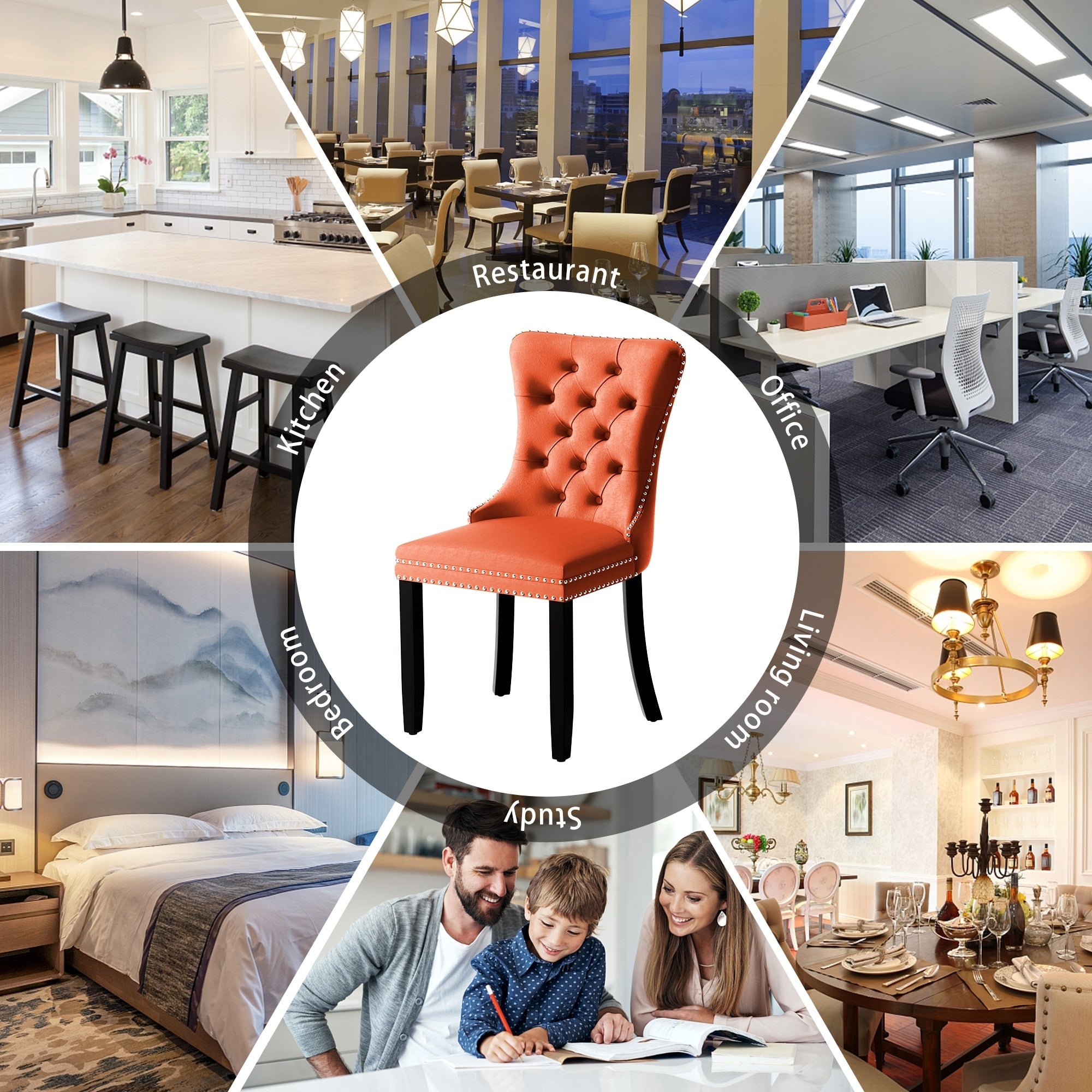 Chaise de salle à manger capitonnée en velours avec pieds en bois massif, lot de 6 Chaise de salle à manger capitonnée en velours avec pieds en bois massif, lot de 6