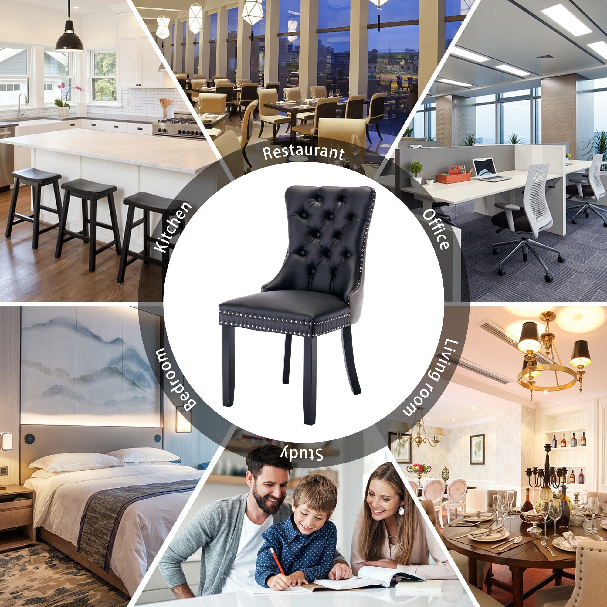 Chaise de salle à manger capitonnée en bois massif Leviton de Roundhill Furniture (lot de 2) Chaise de salle à manger capitonnée en bois massif Leviton de Roundhill Furniture (lot de 2)