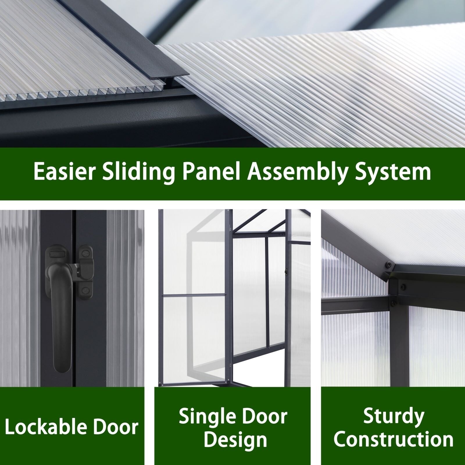 Serre de jardin en aluminium VEIKOUS avec ventilation de toit réglable et porte verrouillable, gris Serre de jardin en aluminium VEIKOUS avec ventilation de toit réglable et porte verrouillable, gris