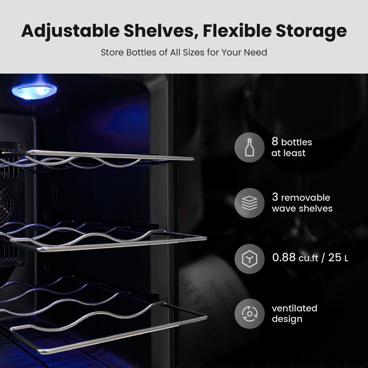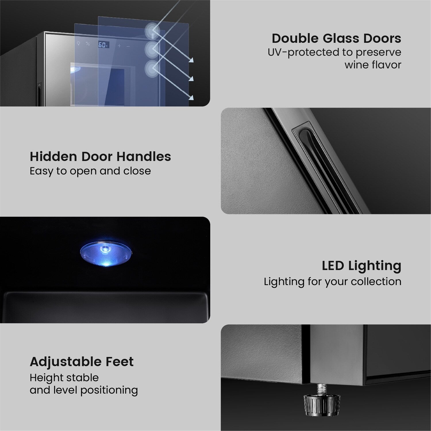 Refroidisseur de boissons polyvalent pour 8 bouteilles (46 à 66 °F) : design élégant et fonctionnement ultra-silencieux pour un usage domestique Refroidisseur de boissons polyvalent pour 8 bouteilles (46 à 66 °F) : design élégant et fonctionnement ultra-silencieux pour un usage domestique
