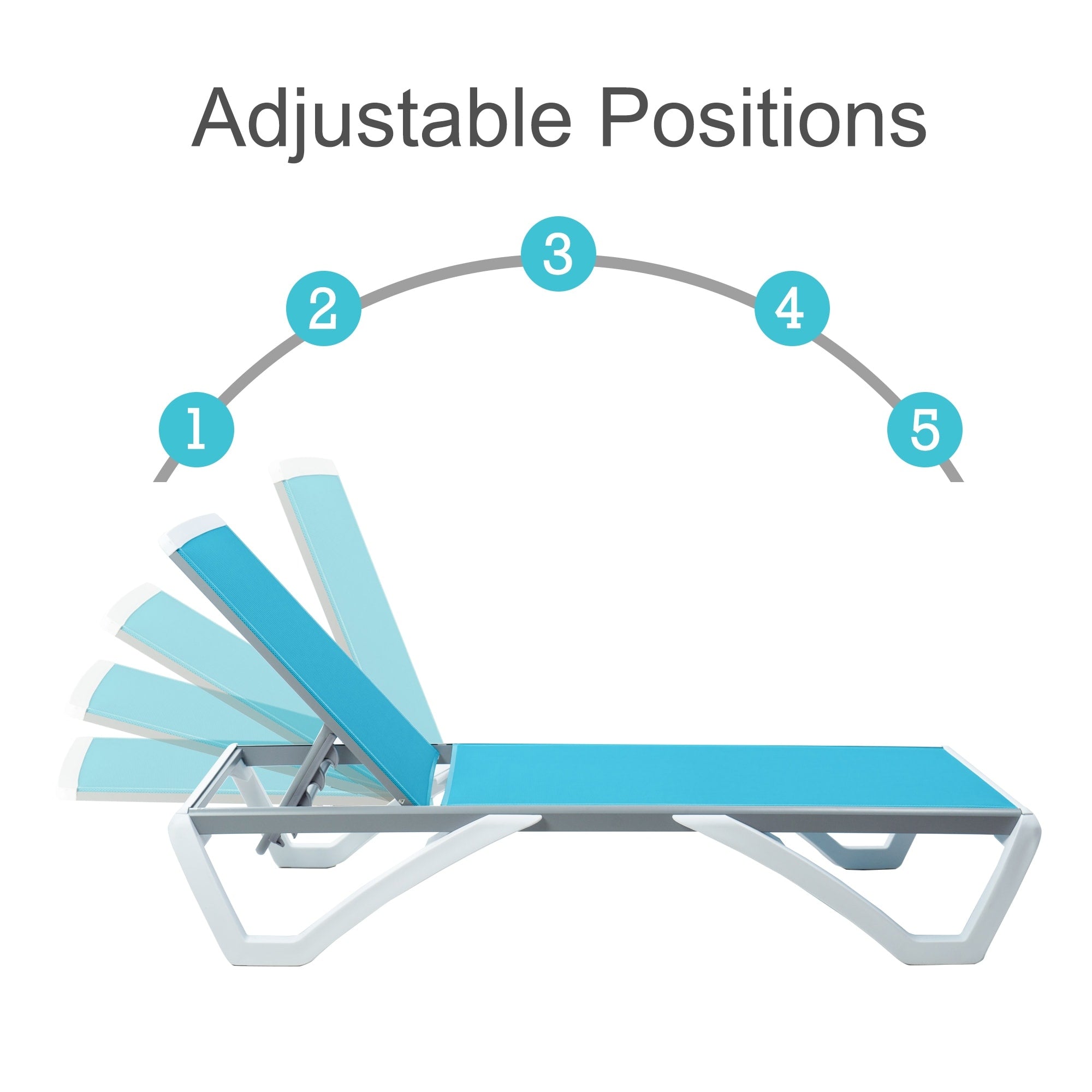 Chaise longue inclinable et réglable Kozyard Alan, pieds entièrement plats en aluminium et résine polypropylène Chaise longue inclinable et réglable Kozyard Alan, pieds entièrement plats en aluminium et résine polypropylène