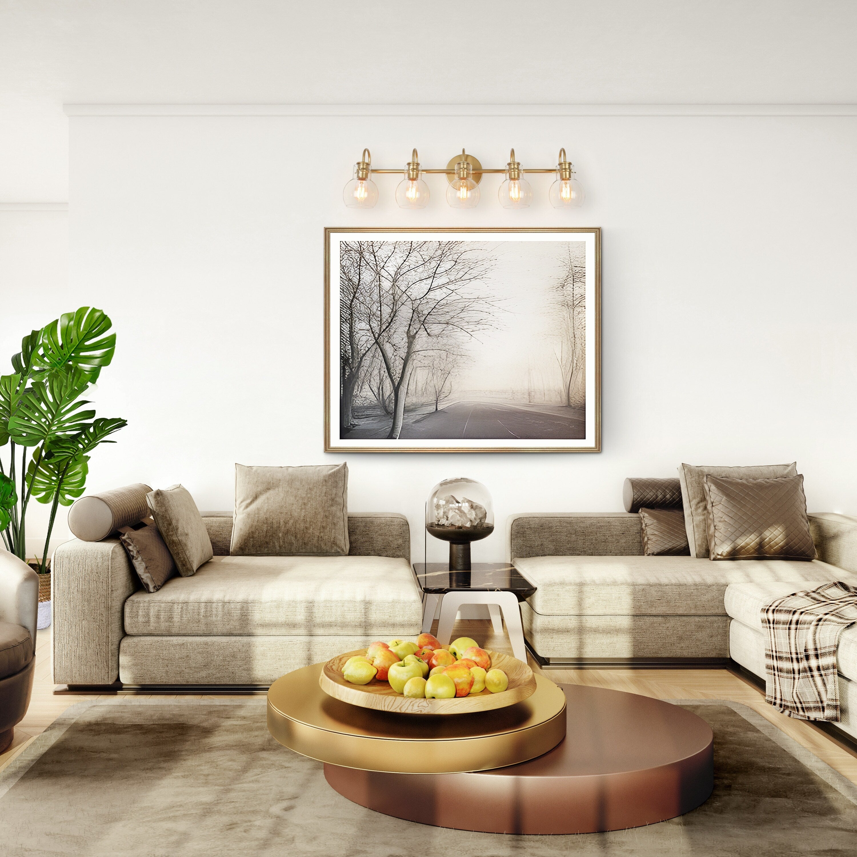 Applique de salle de bain moderne à 6 LED à intensité variable de style milieu du siècle avec verre artistique - 51 pouces Applique de salle de bain moderne à 6 LED à intensité variable de style milieu du siècle avec verre artistique - 51 pouces