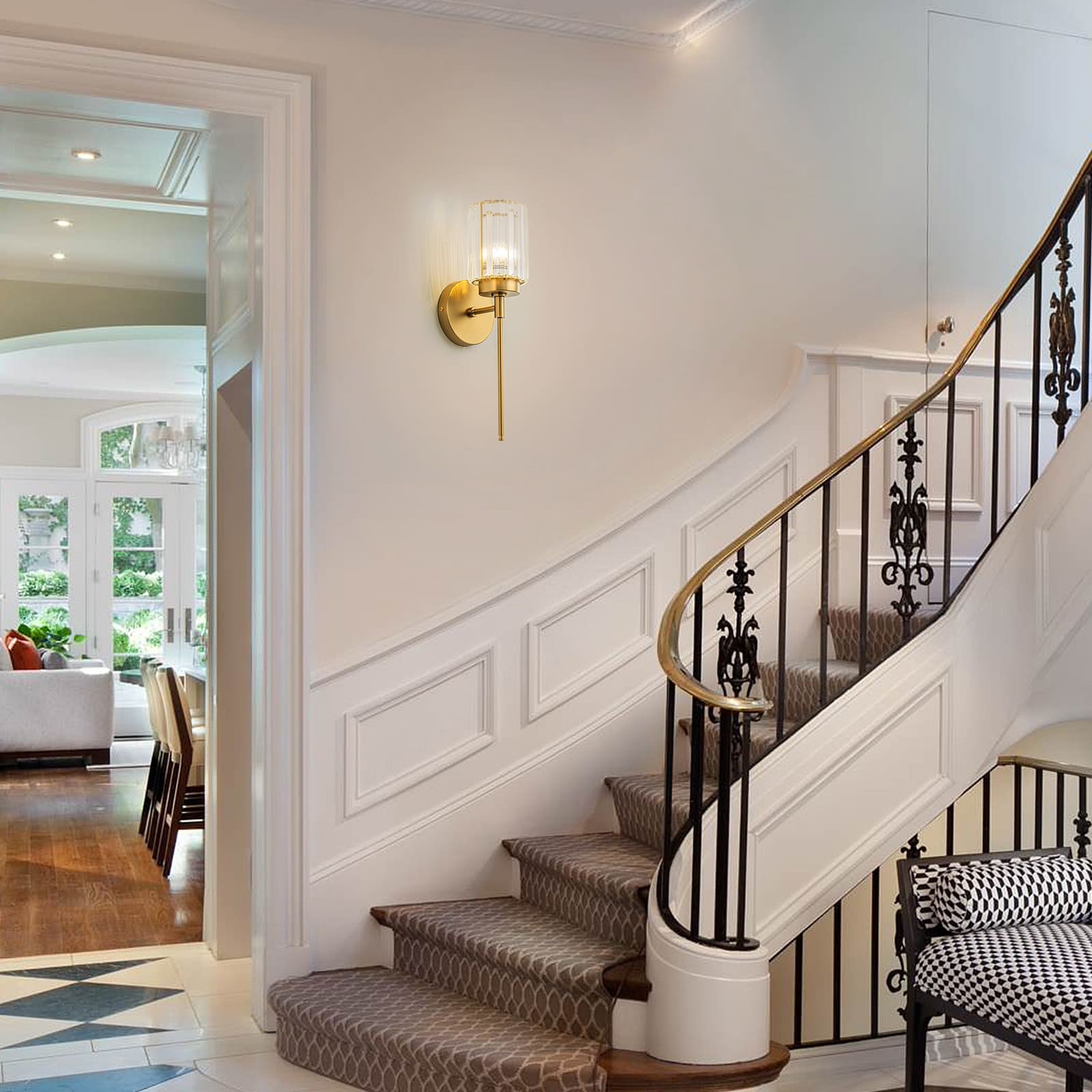 €39,00Applique murale moderne dorée à intensité variable, style cylindre glamour pour salle de bain, en cristal, pour meuble-lavabo